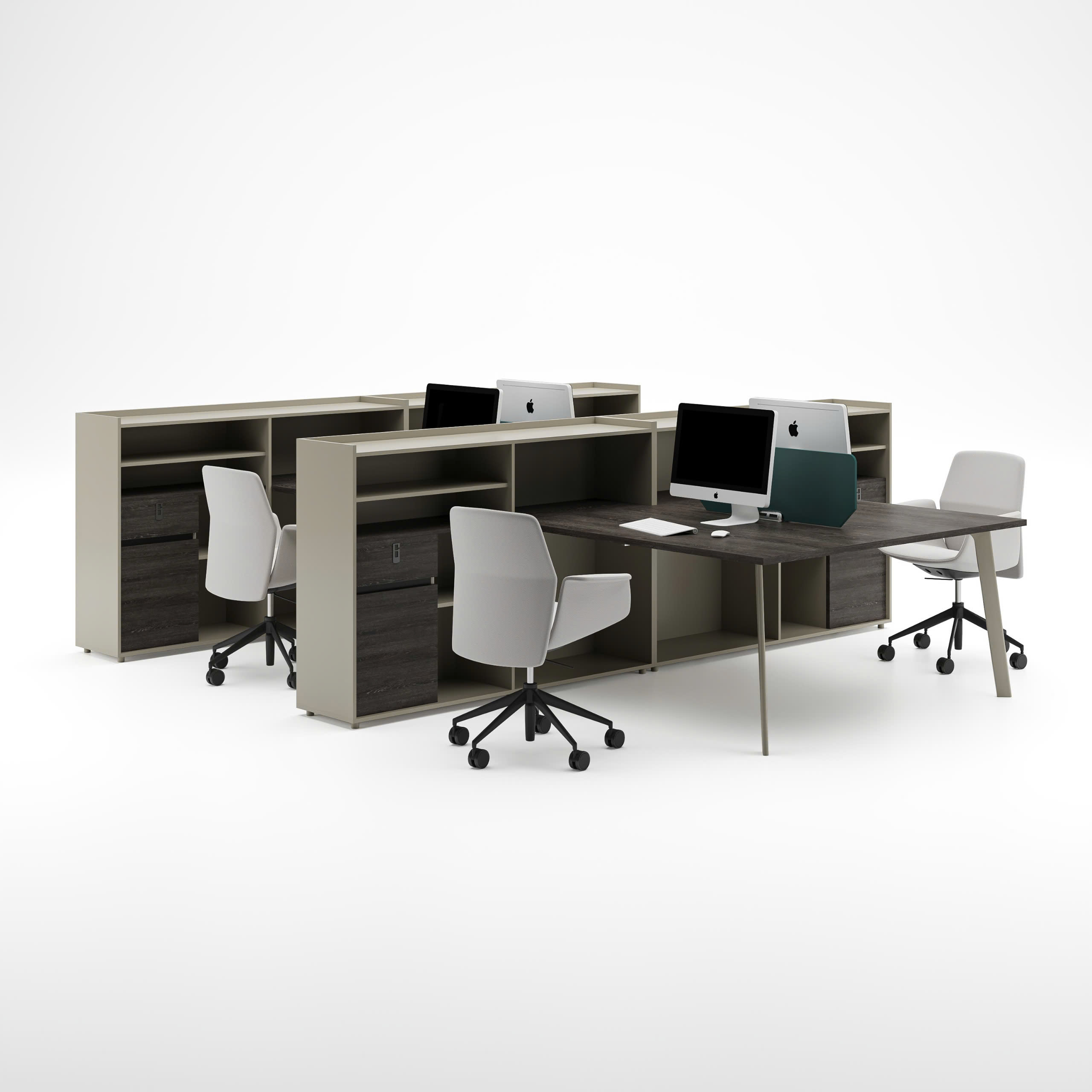 Bàn Làm Việc Nhân Viên 4 Vị Trí Ngồi Kèm Tủ OSK BNVT4