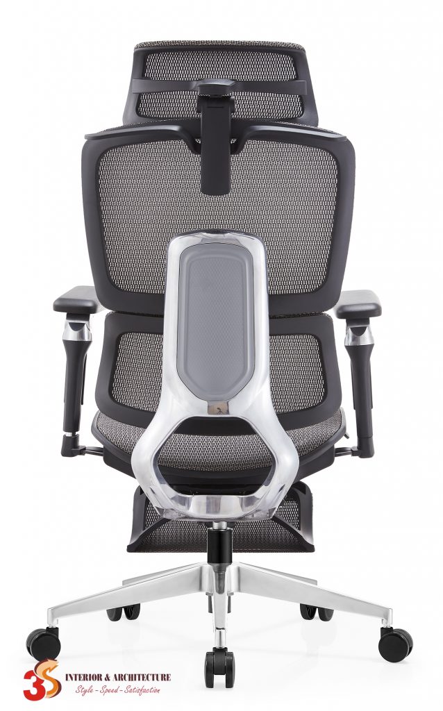 Lưng ghế: Khung lưng PA+30%GF, kết nối khung lưng bằng hợp kim nhôm, lưng ghế có thể điều chỉnh 6 nấc độ cao, thiết kế tách rời lưng–thắt lưng, ôm sát bao phủ hỗ trợ nâng đỡ linh hoạt, đệm đôi lò xo hỗ trợ phù hợp nhiều dáng người.