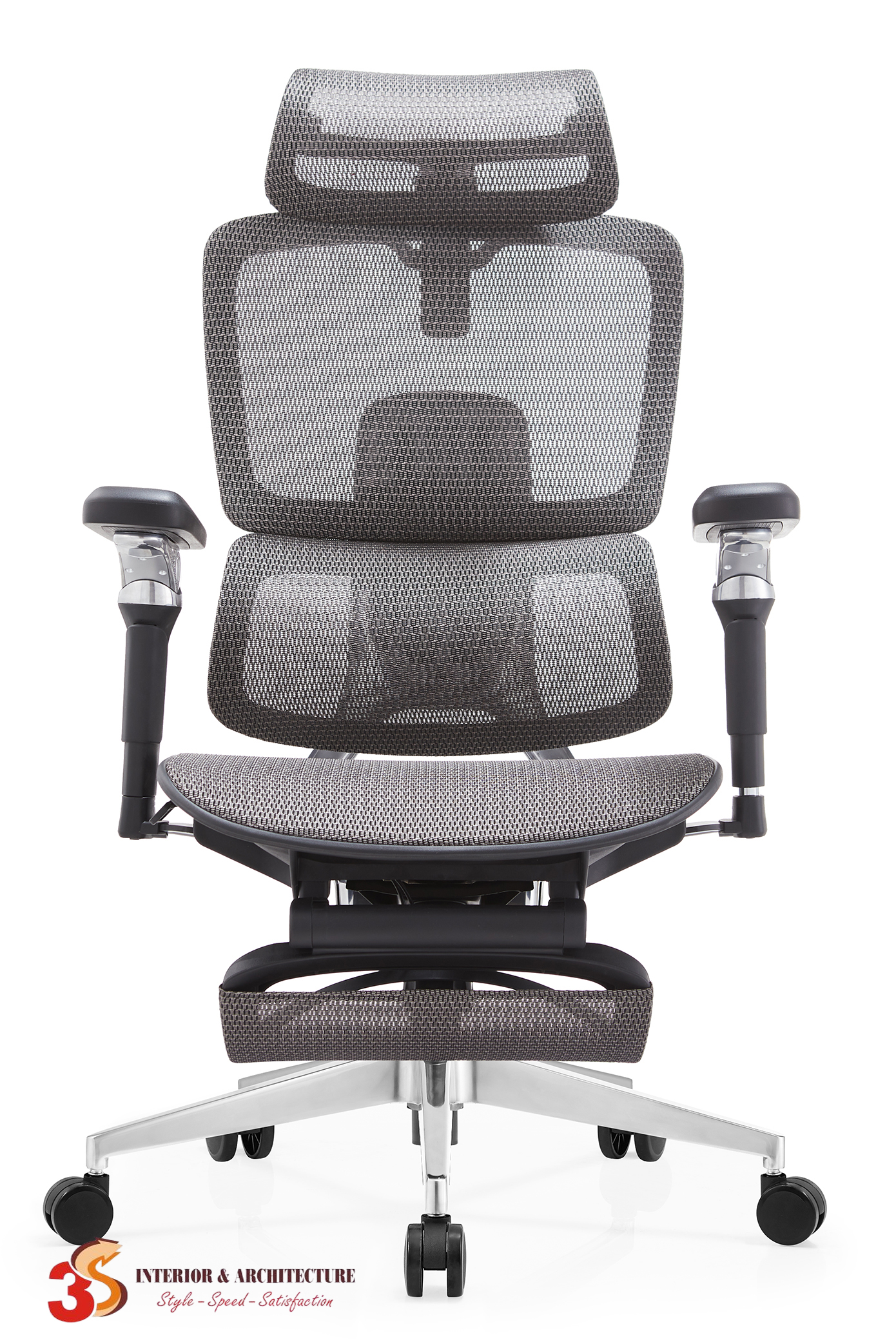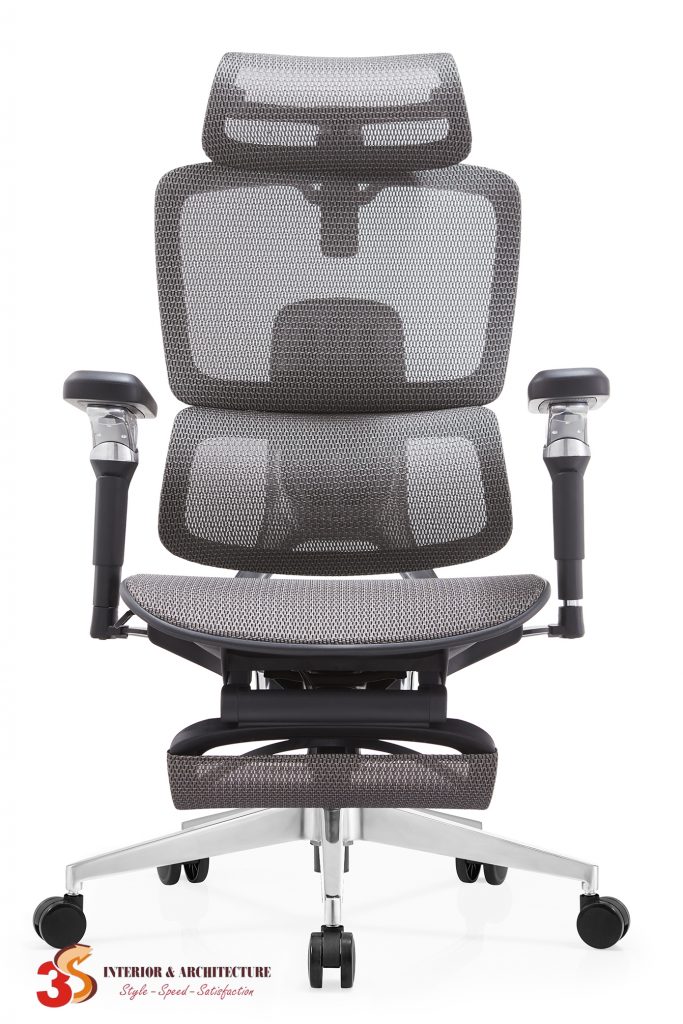 Đệm ngồi: Đệm lưới toàn bộ bằng PA+30%GF màu đen, thoáng khí và thoải mái, kèm gác chân.