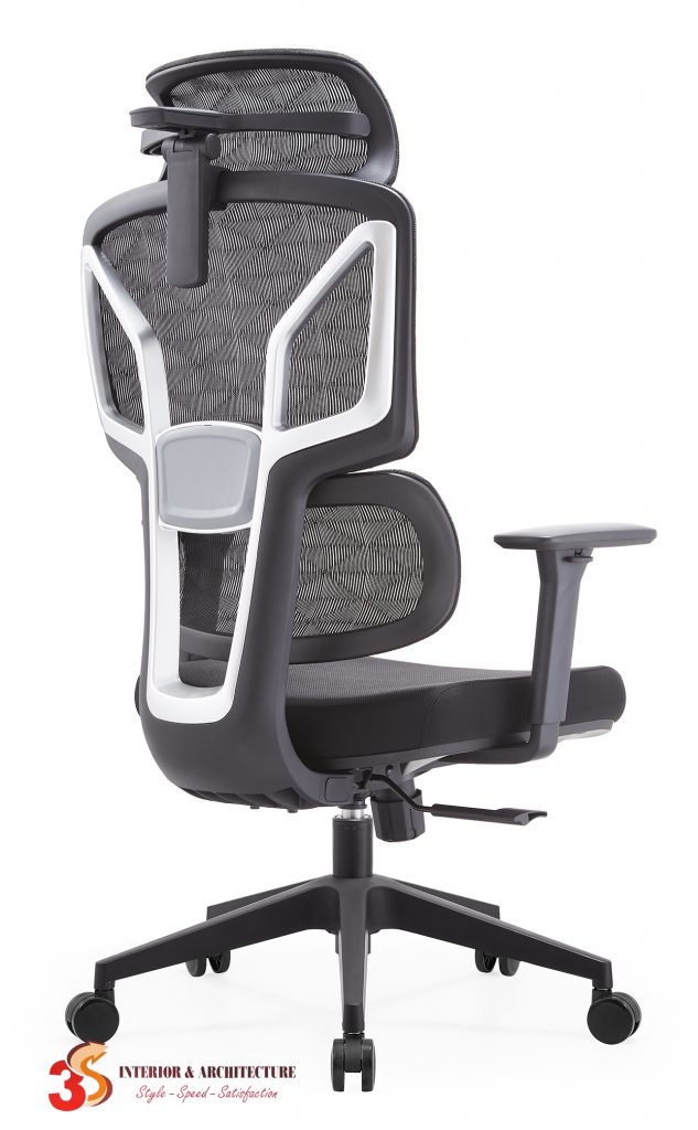 Lưng ghế: Khung lưng PA+30%GF, khung lưng kết nối bằng giá đỡ sơn tĩnh điện mạ màu, thiết kế tách rời lưng – thắt lưng, tựa thắt lưng ôm sát với đệm đôi lò xo, phù hợp nhiều chiều cao người dùng.
