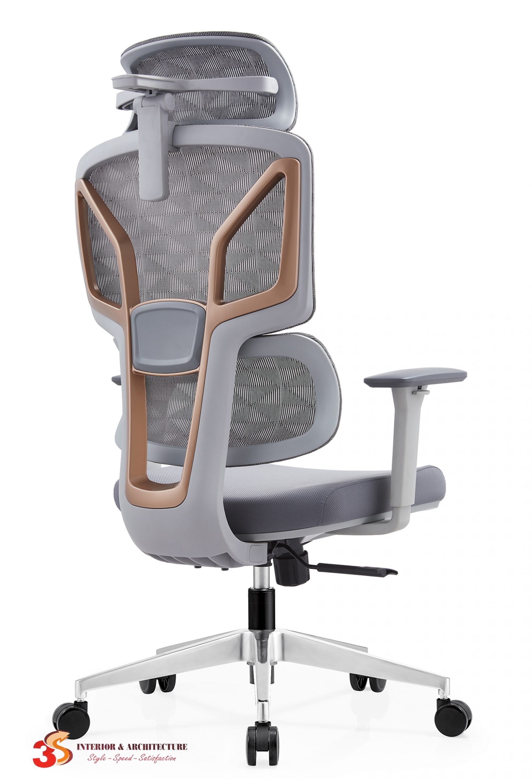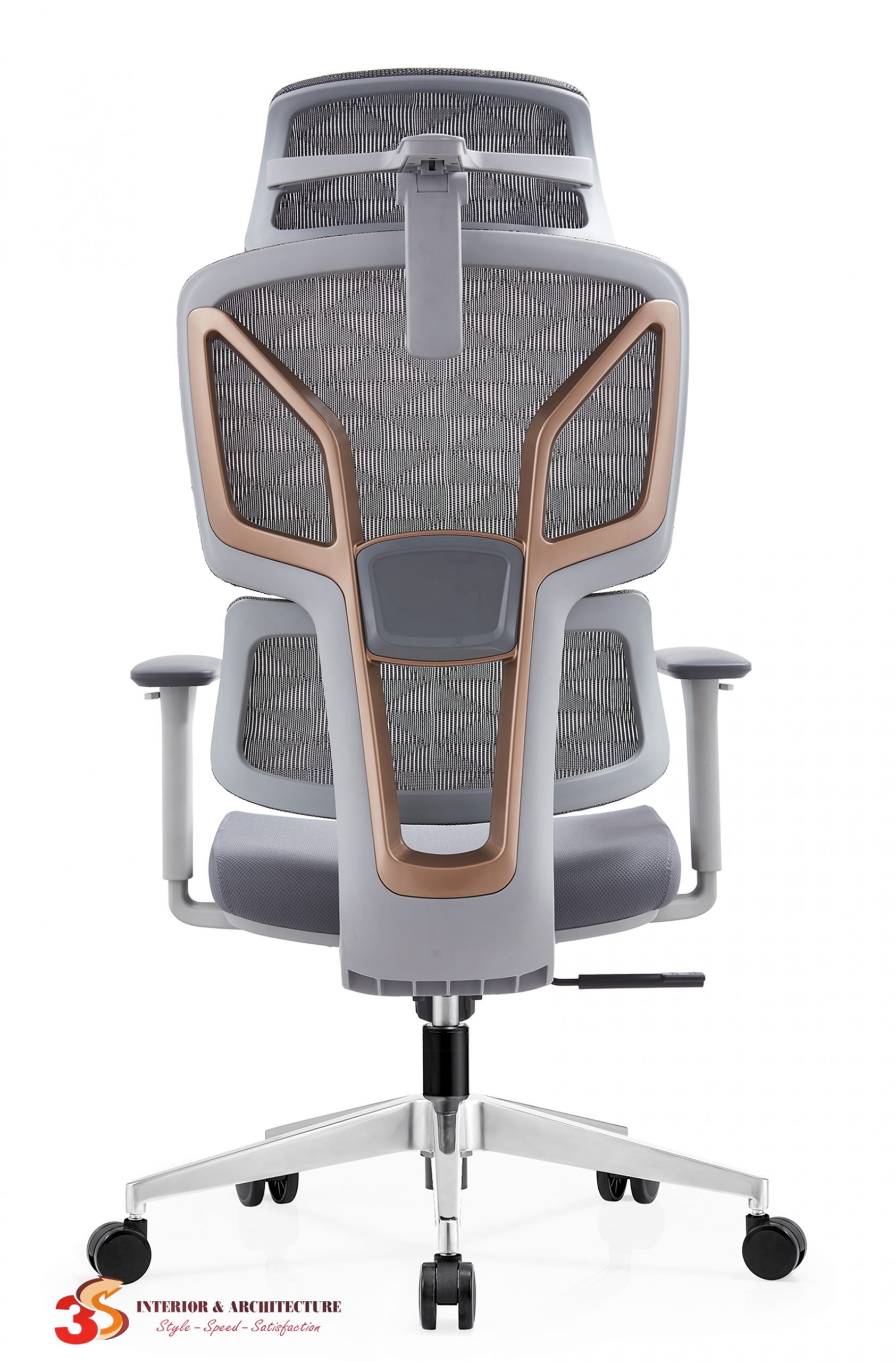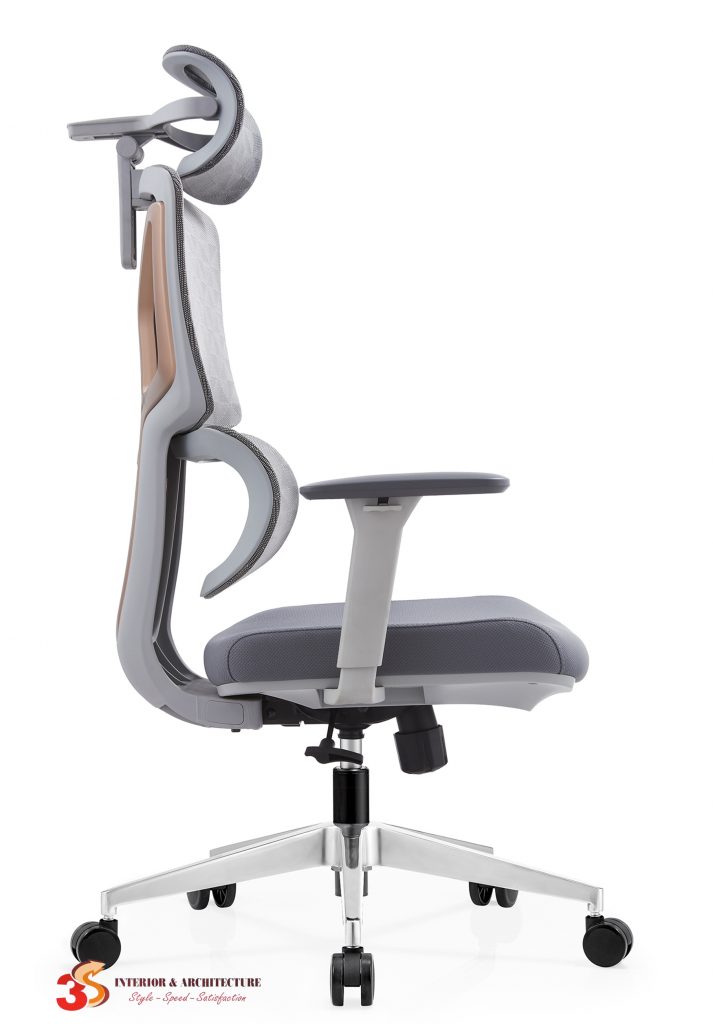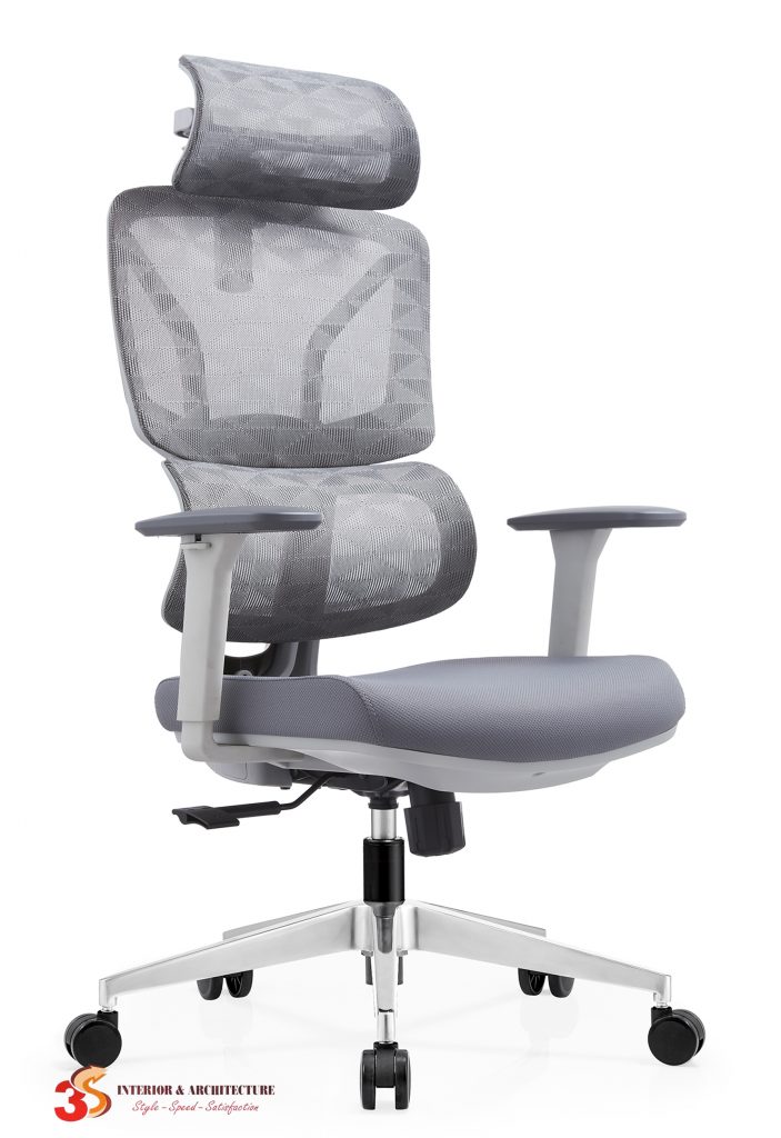 Chất liệu: Khung ghế bằng nhựa PA liên kết bằng hợp kim nhôm, chân ghế hợp kim nhôm, lưng lưới, tay khung PA
