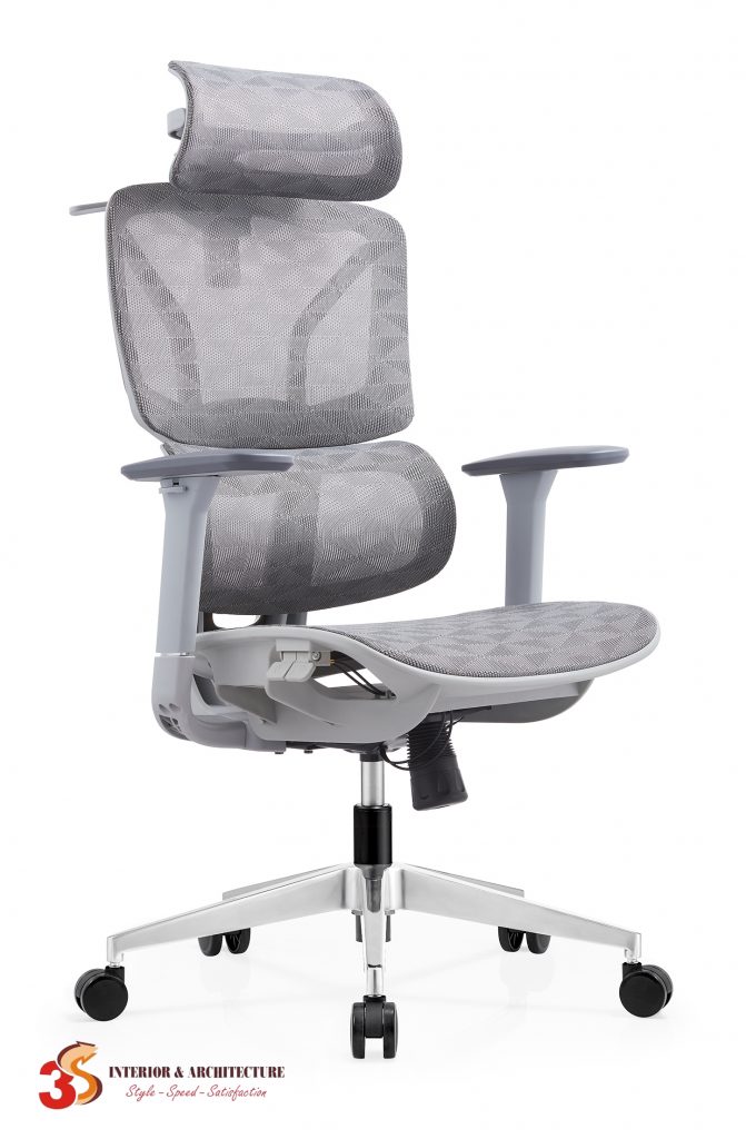 Tựa tay: Tựa tay 3D mạ điện, điều chỉnh lên xuống, mặt tay xoay trái – phải, trượt trước – sau; khung PA+30%GF màu xám, mặt PU.
