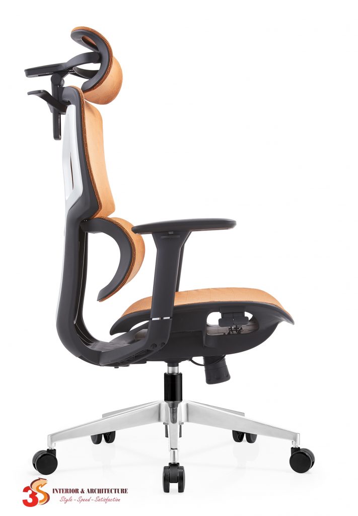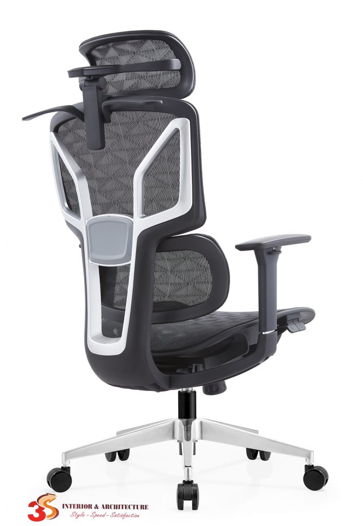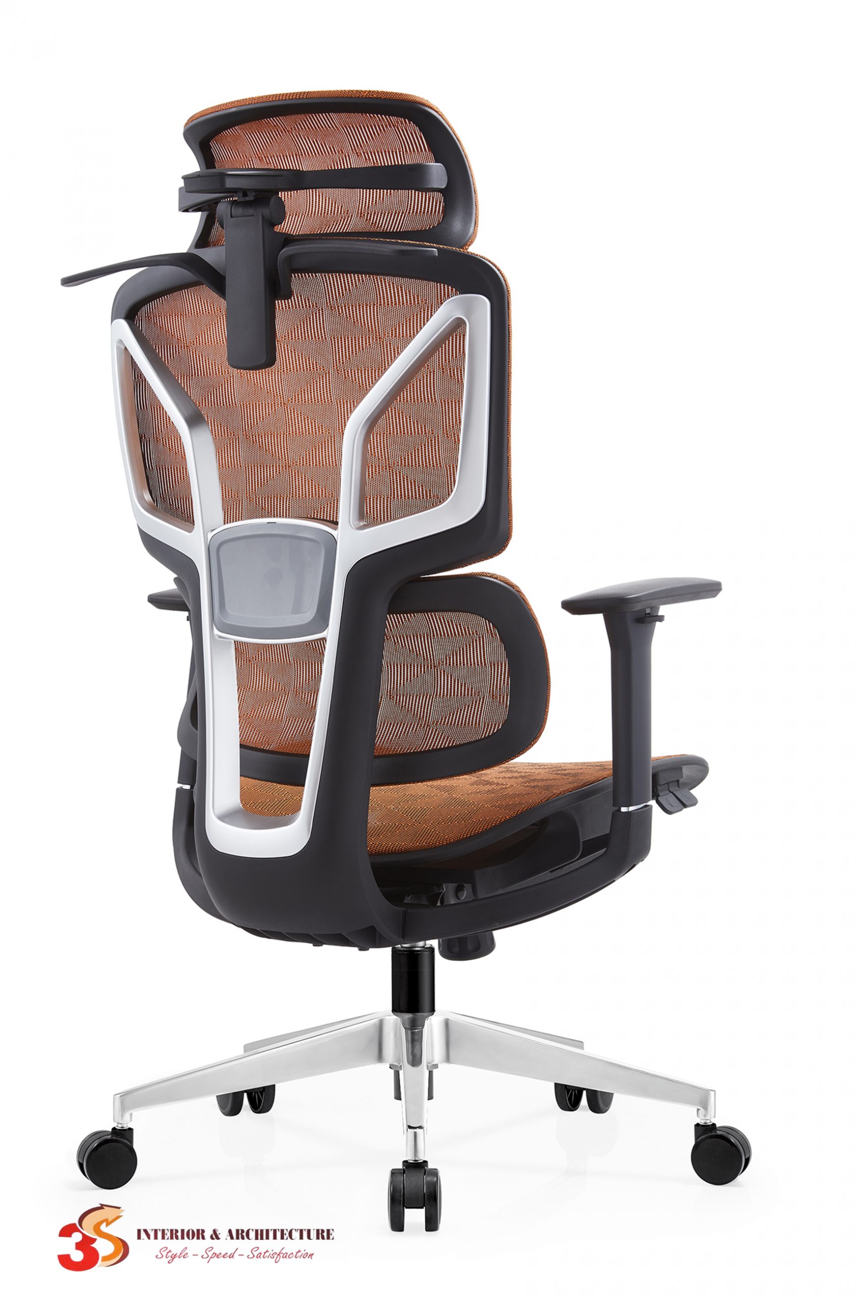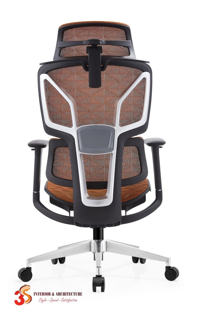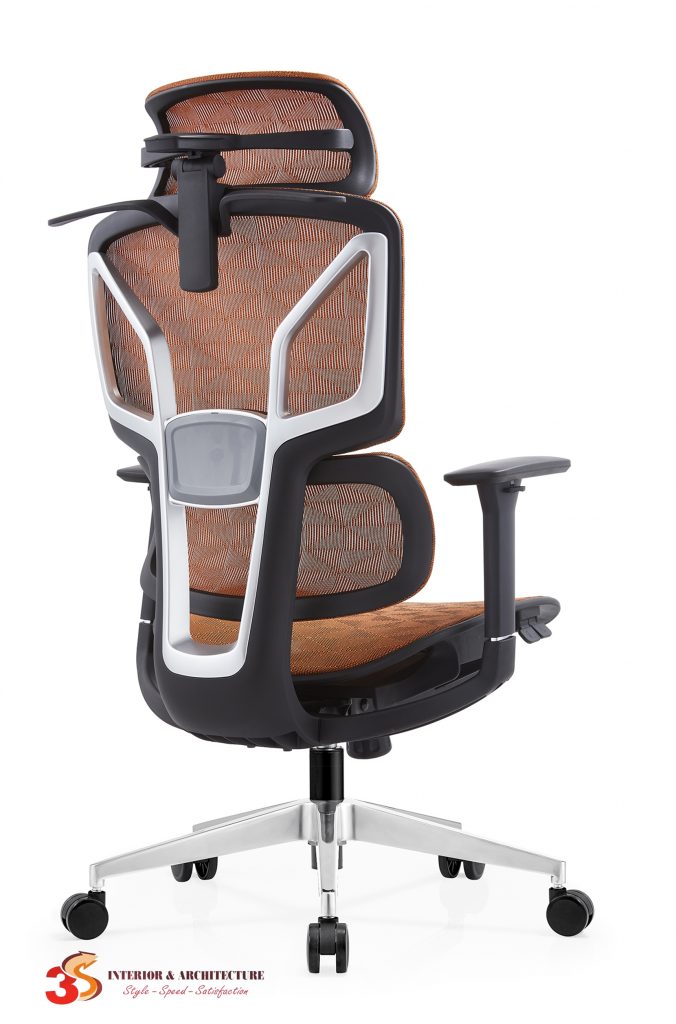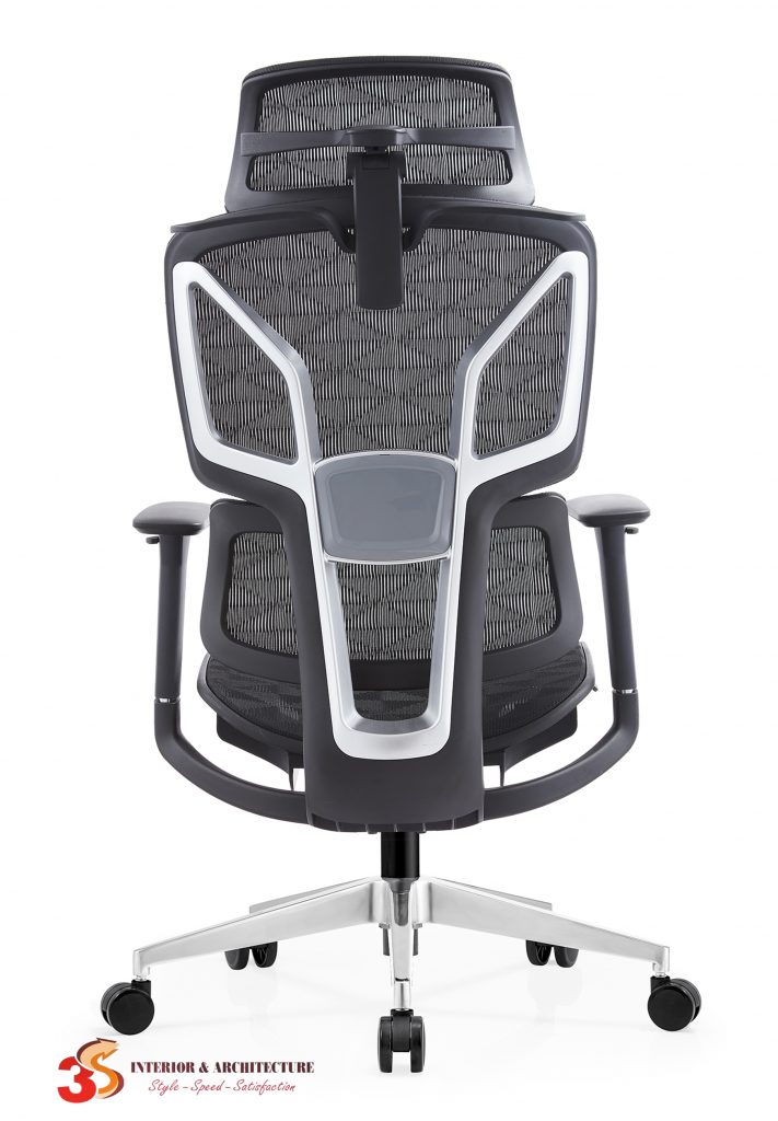 Chất liệu: Khung ghế bằng nhựa PA liên kết bằng hợp kim nhôm, chân ghế nhựa MC nylon, lưng lưới, tay khung PA