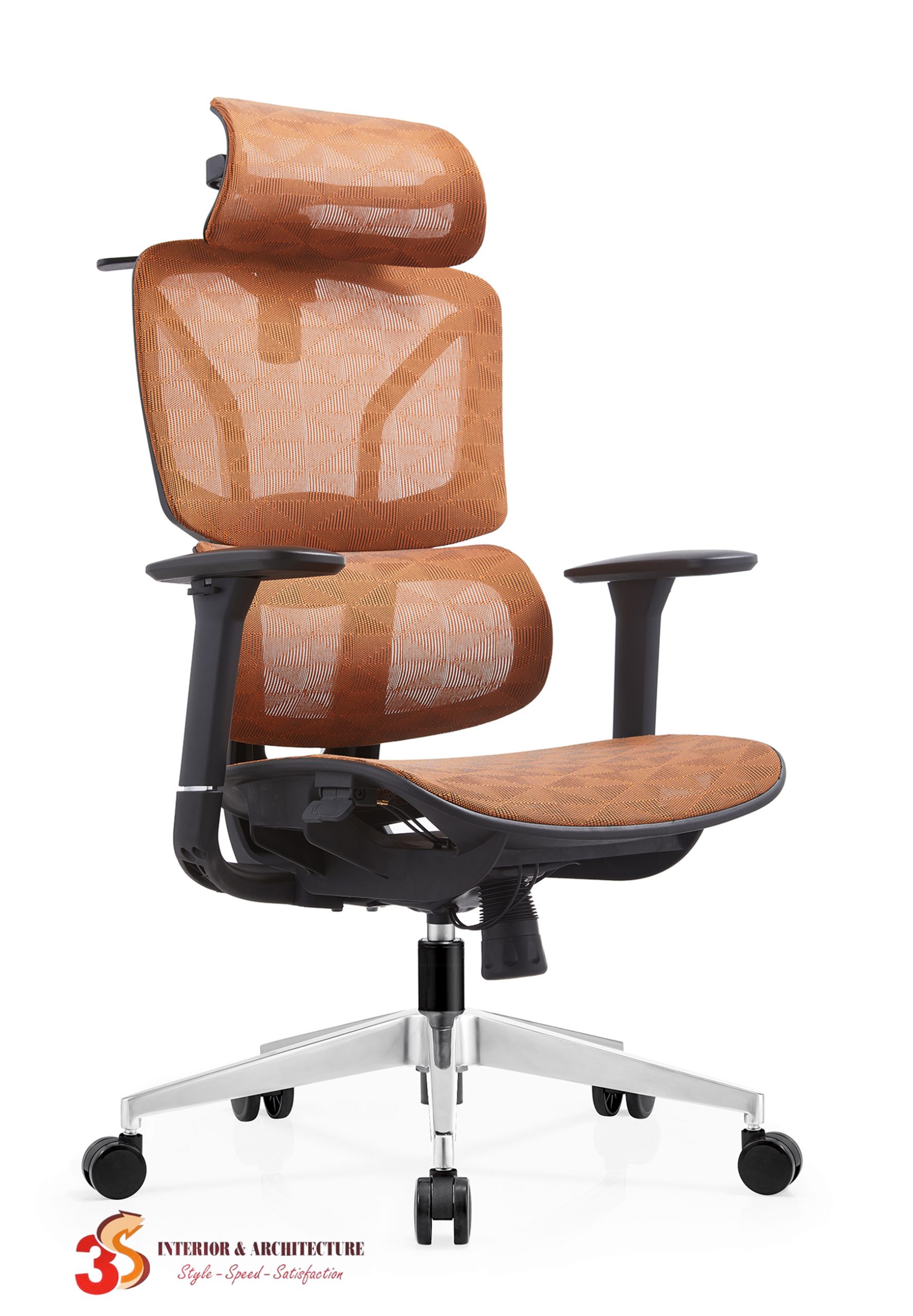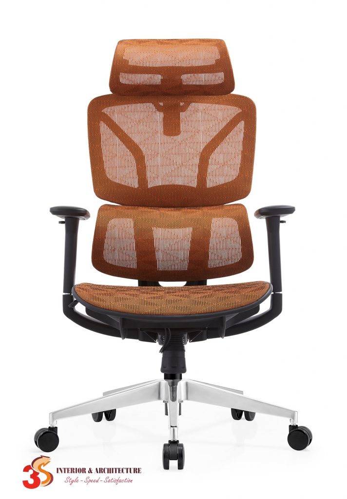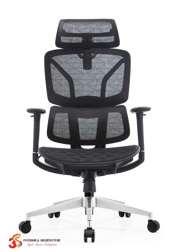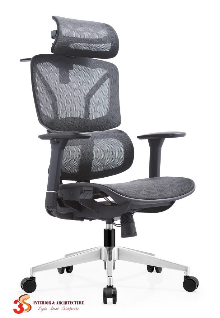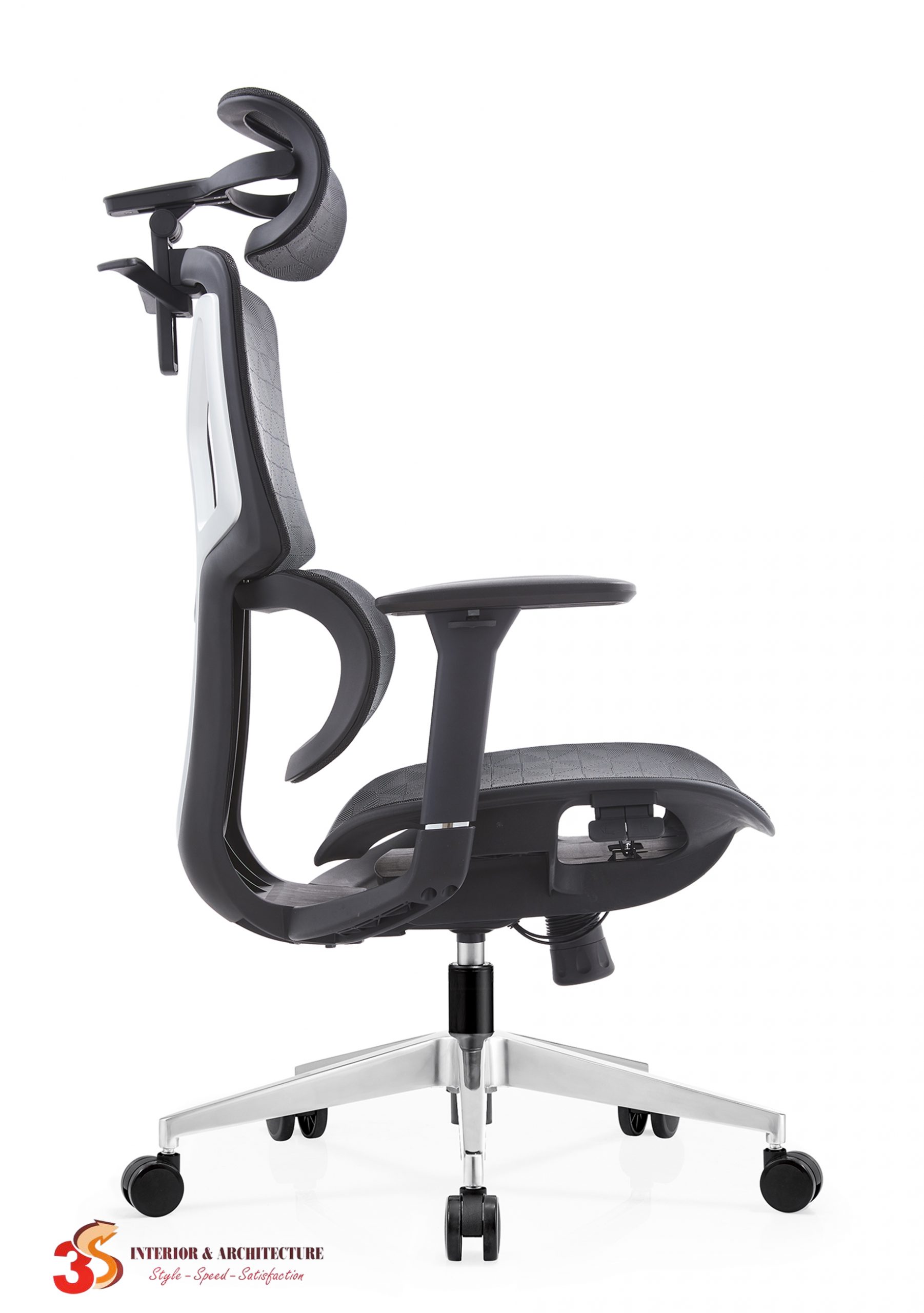 Chất liệu: Khung ghế bằng nhựa PA liên kết bằng hợp kim nhôm, chân ghế nhựa MC nylon, lưng lưới, tay khung PA