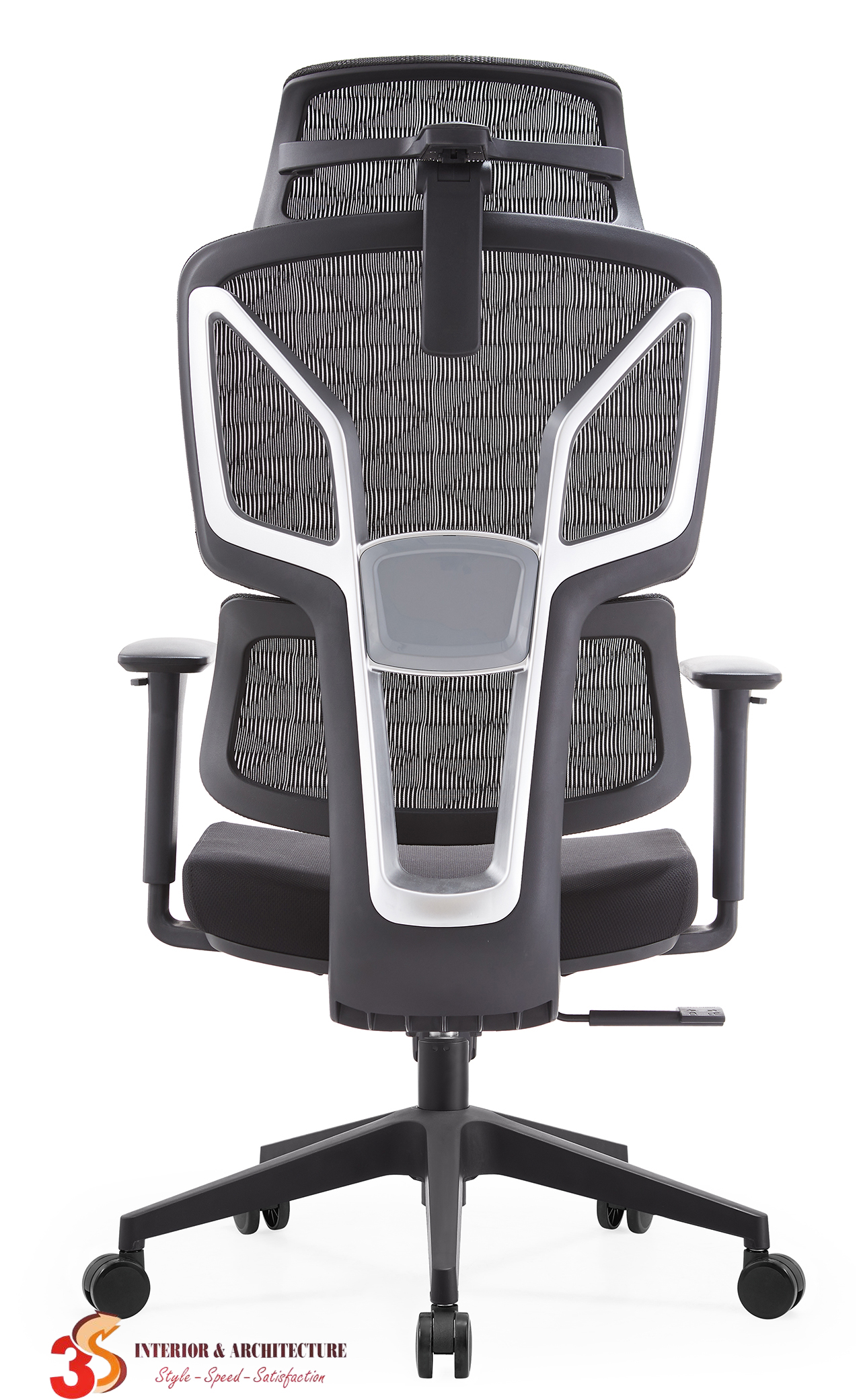 Lưng ghế: Khung lưng PA+30%GF, khung lưng kết nối bằng giá đỡ sơn tĩnh điện mạ màu, thiết kế tách rời lưng – thắt lưng, tựa thắt lưng ôm sát với đệm đôi lò xo, phù hợp nhiều chiều cao người dùng.