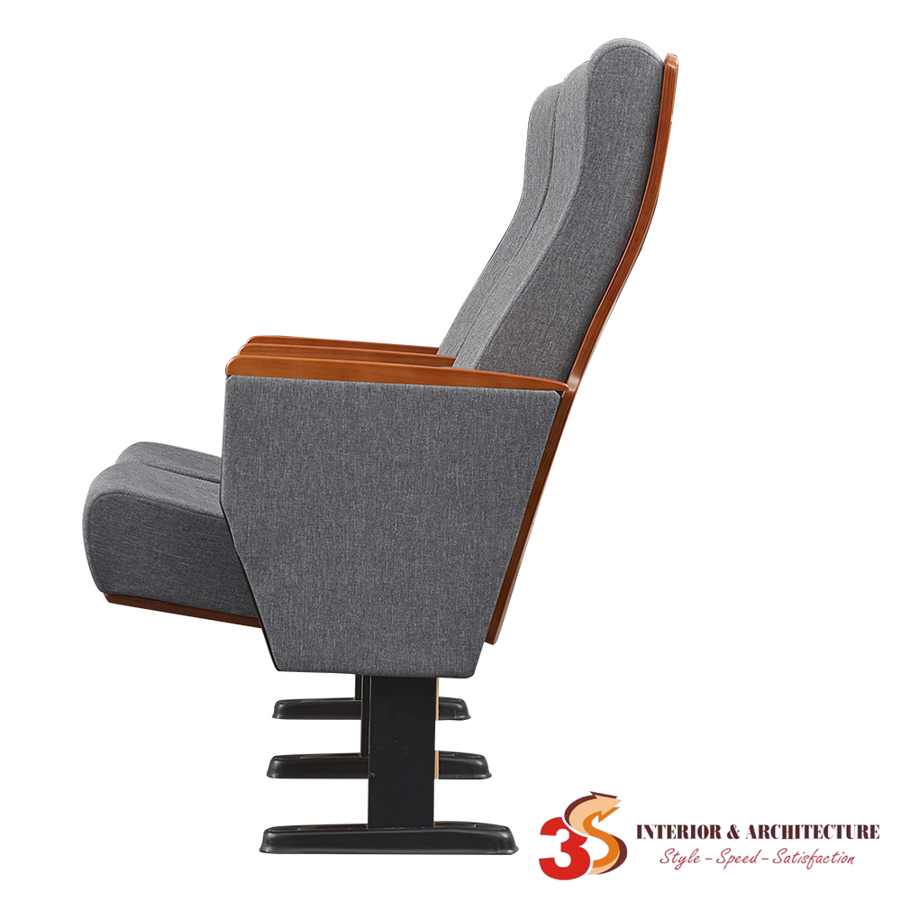 Tựa tay: Ốp gỗ tự nhiên, chắc chắn và sang trọng, tăng tính thẩm mỹ cho không gian hội trường.