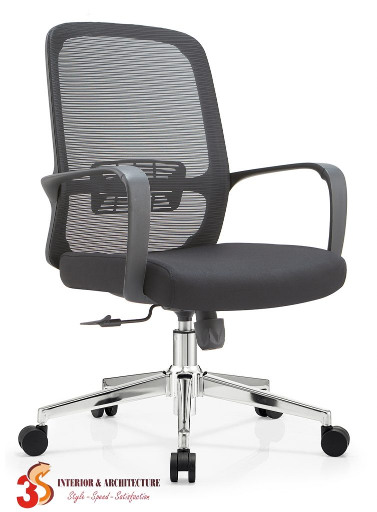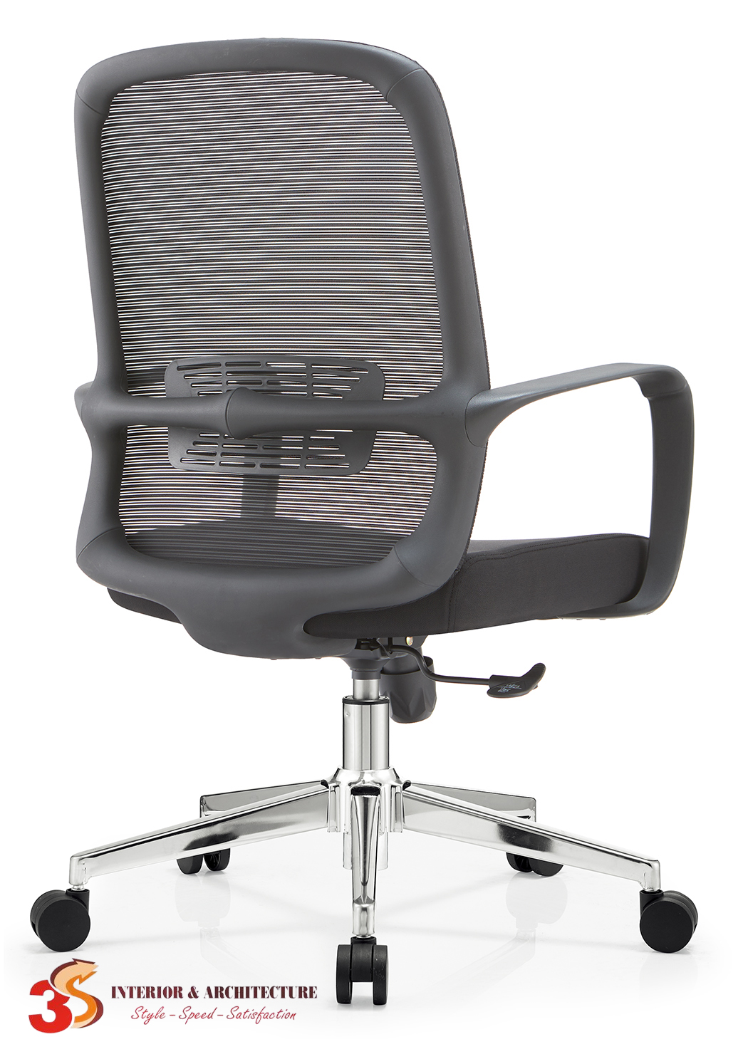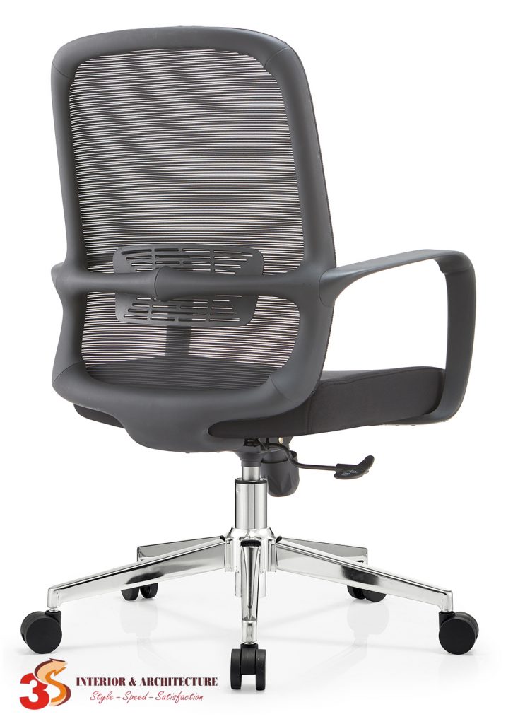 Tựa lưng: Khung PP xám kết hợp sợi thủy tinh, bền chắc, nâng đỡ cột sống.