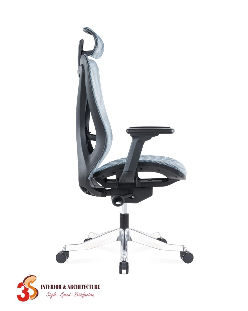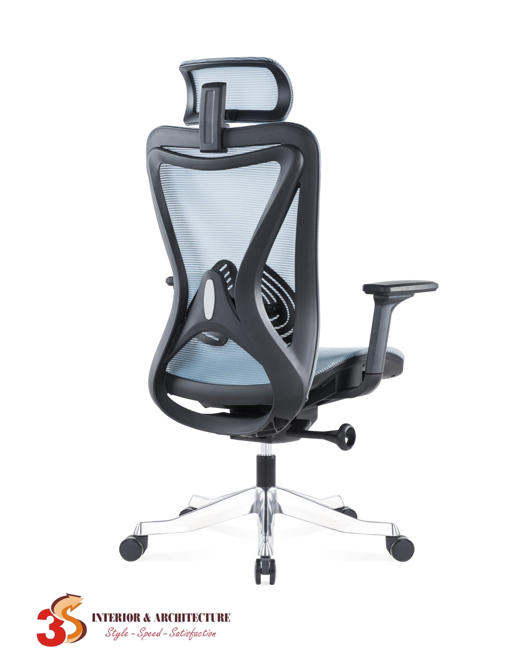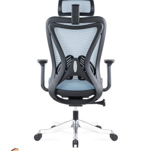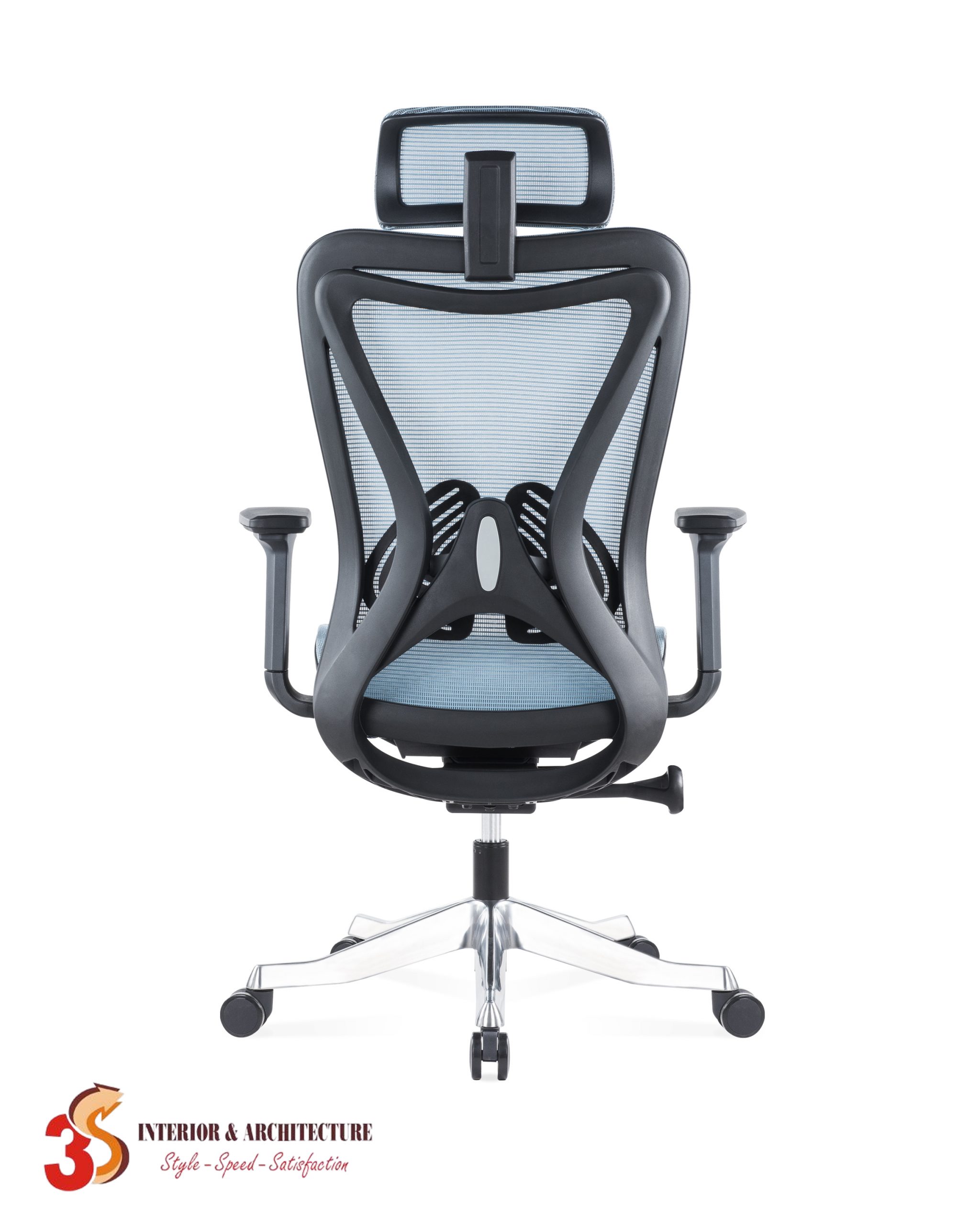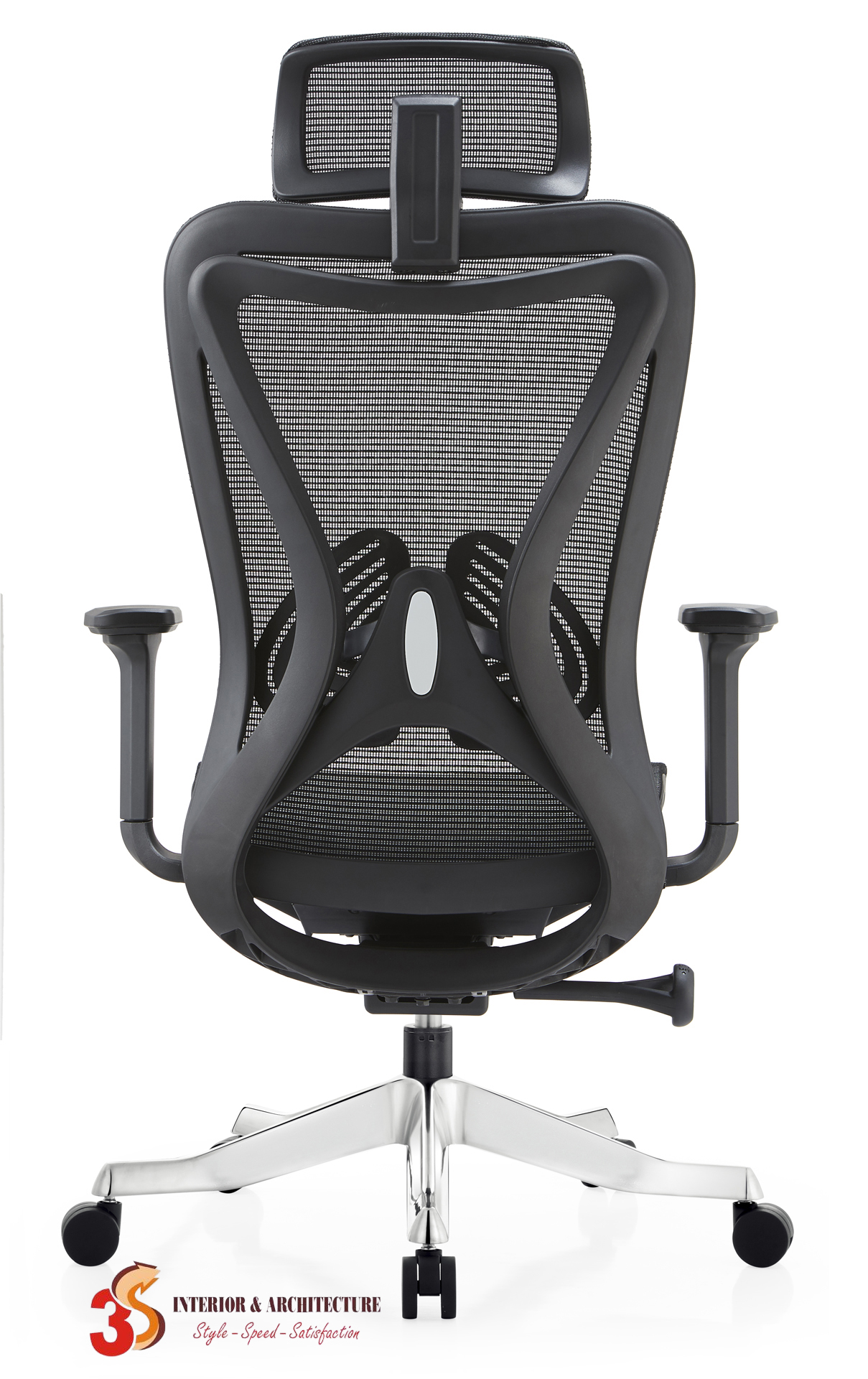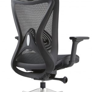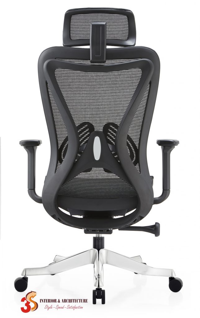 Tựa lưng: Thiết kế lưng cong khí động học, tích hợp “cánh bướm” hỗ trợ đôi cho vùng thắt lưng, chất liệu nylon + nhựa gia cố sợi thủy tinh, đạt tiêu chuẩn BIFMA5.1. Lưng tựa bọc lưới nylon cao cấp nhập khẩu từ Hàn Quốc, đi kèm chức năng nâng hạ thắt lưng.