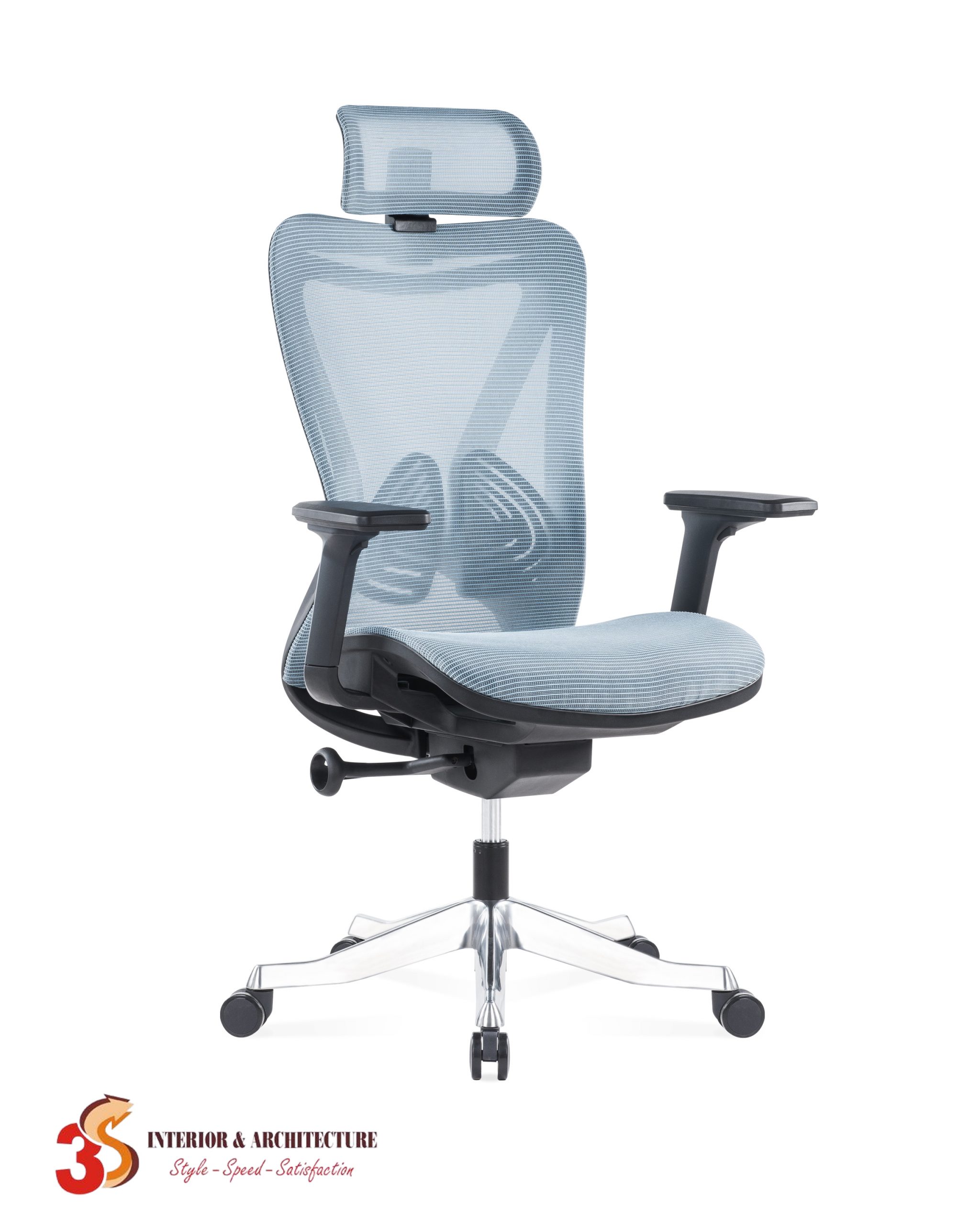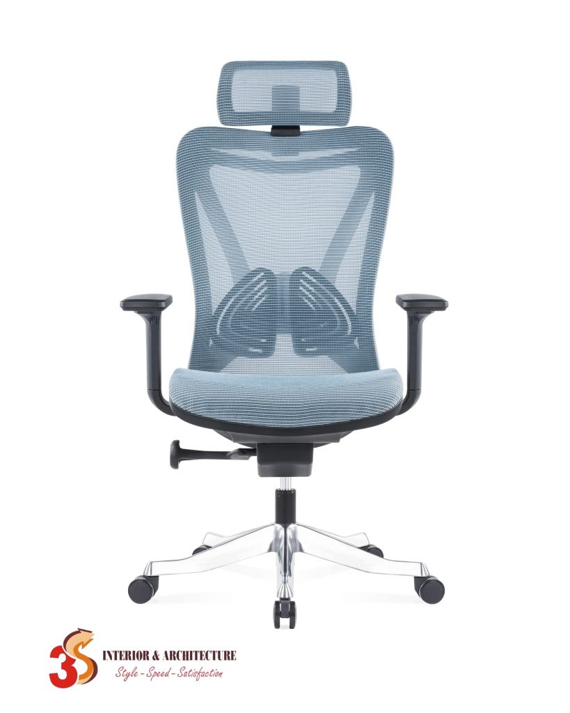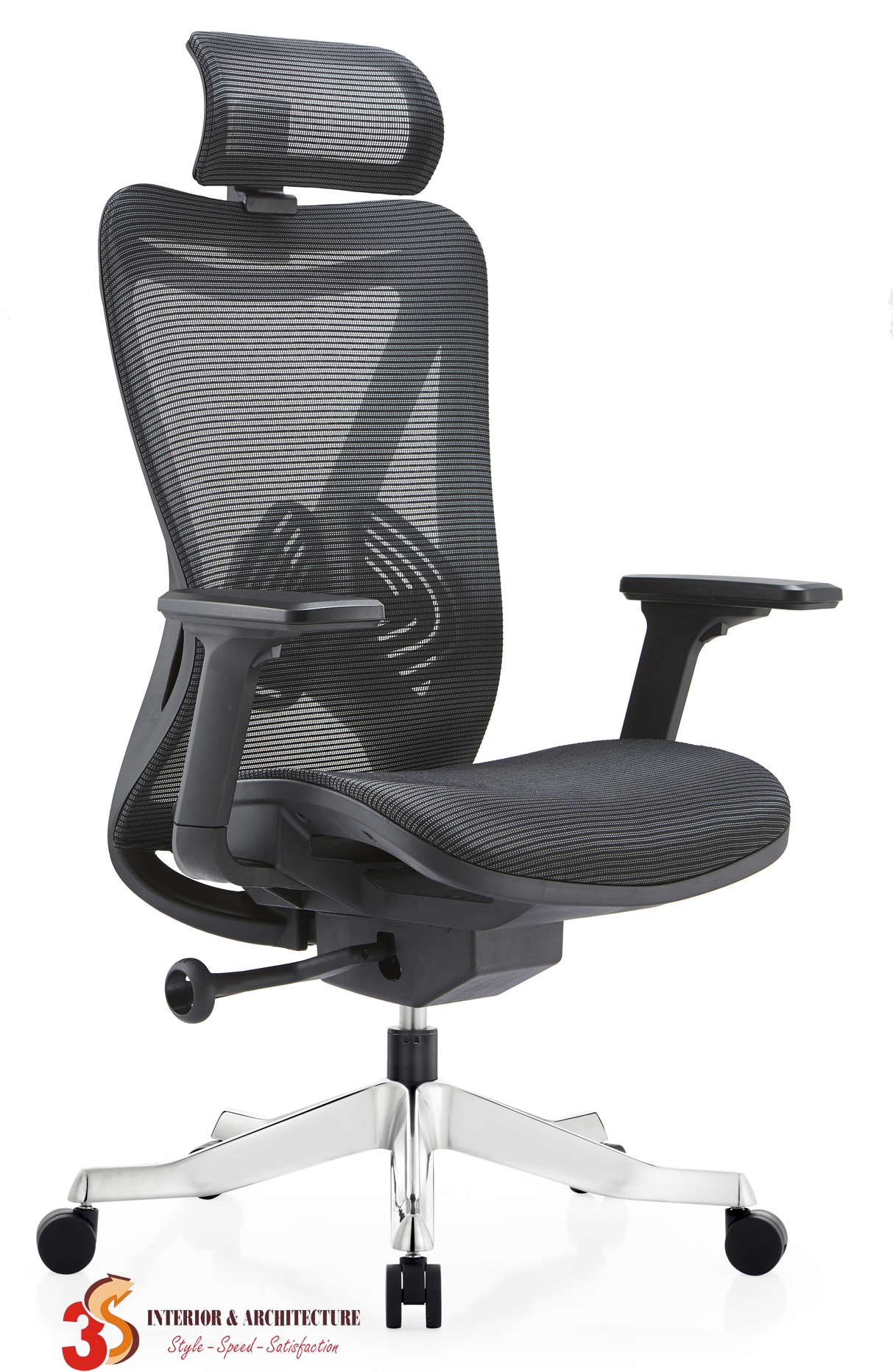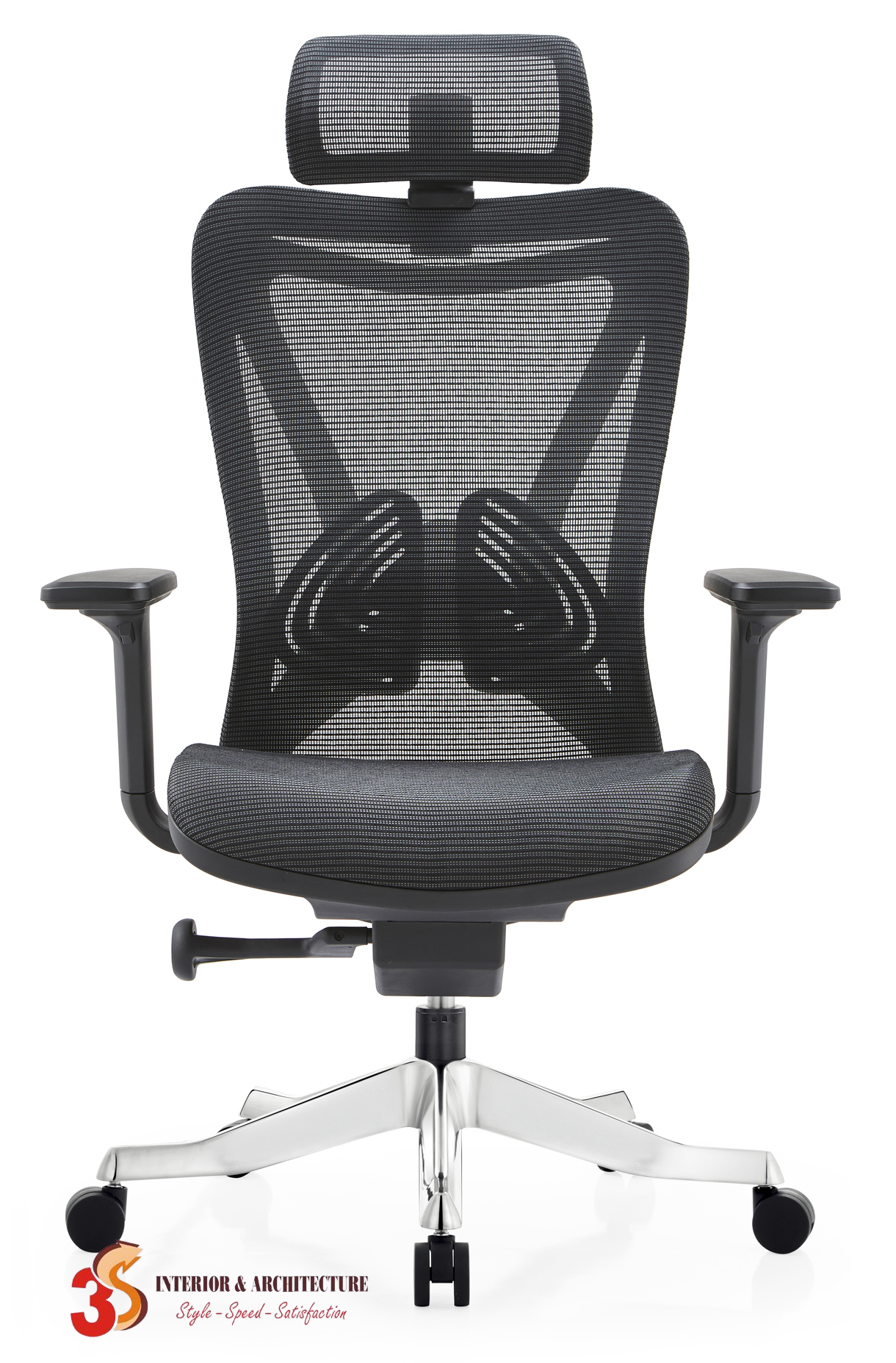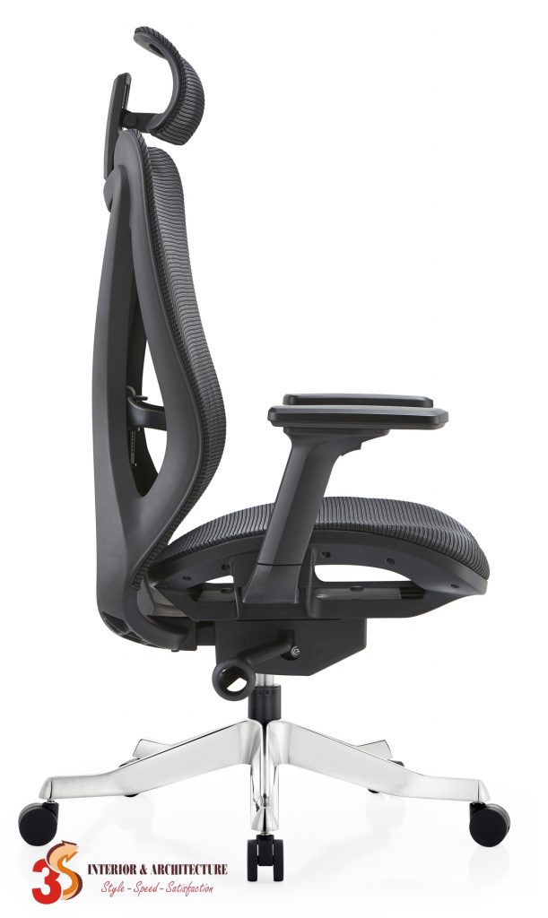 Tựa lưng: Thiết kế lưng cong khí động học, tích hợp “cánh bướm” hỗ trợ đôi cho vùng thắt lưng, chất liệu nylon + nhựa gia cố sợi thủy tinh, đạt tiêu chuẩn BIFMA5.1. Lưng tựa bọc lưới nylon cao cấp nhập khẩu từ Hàn Quốc, đi kèm chức năng nâng hạ thắt lưng.