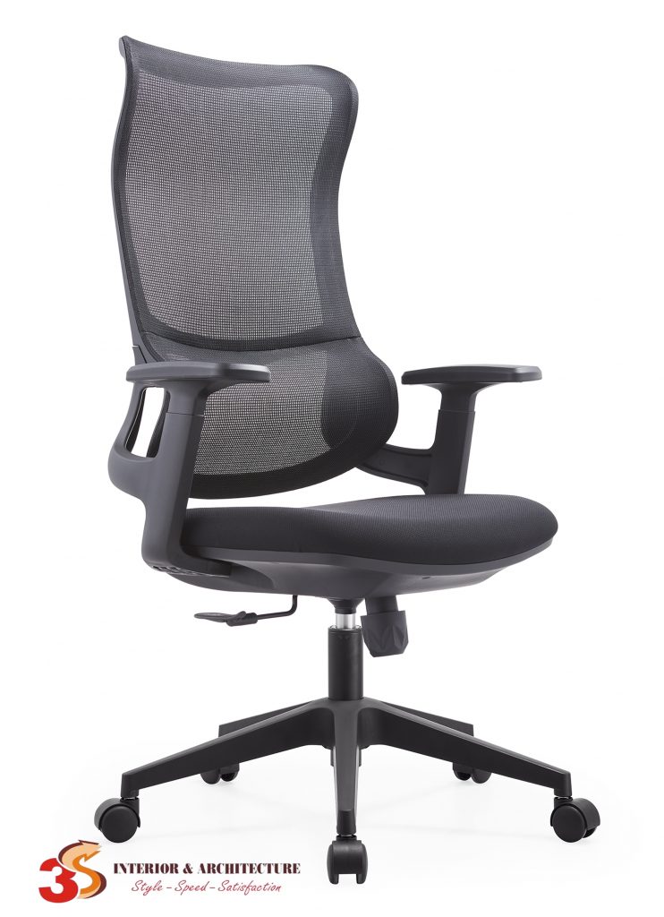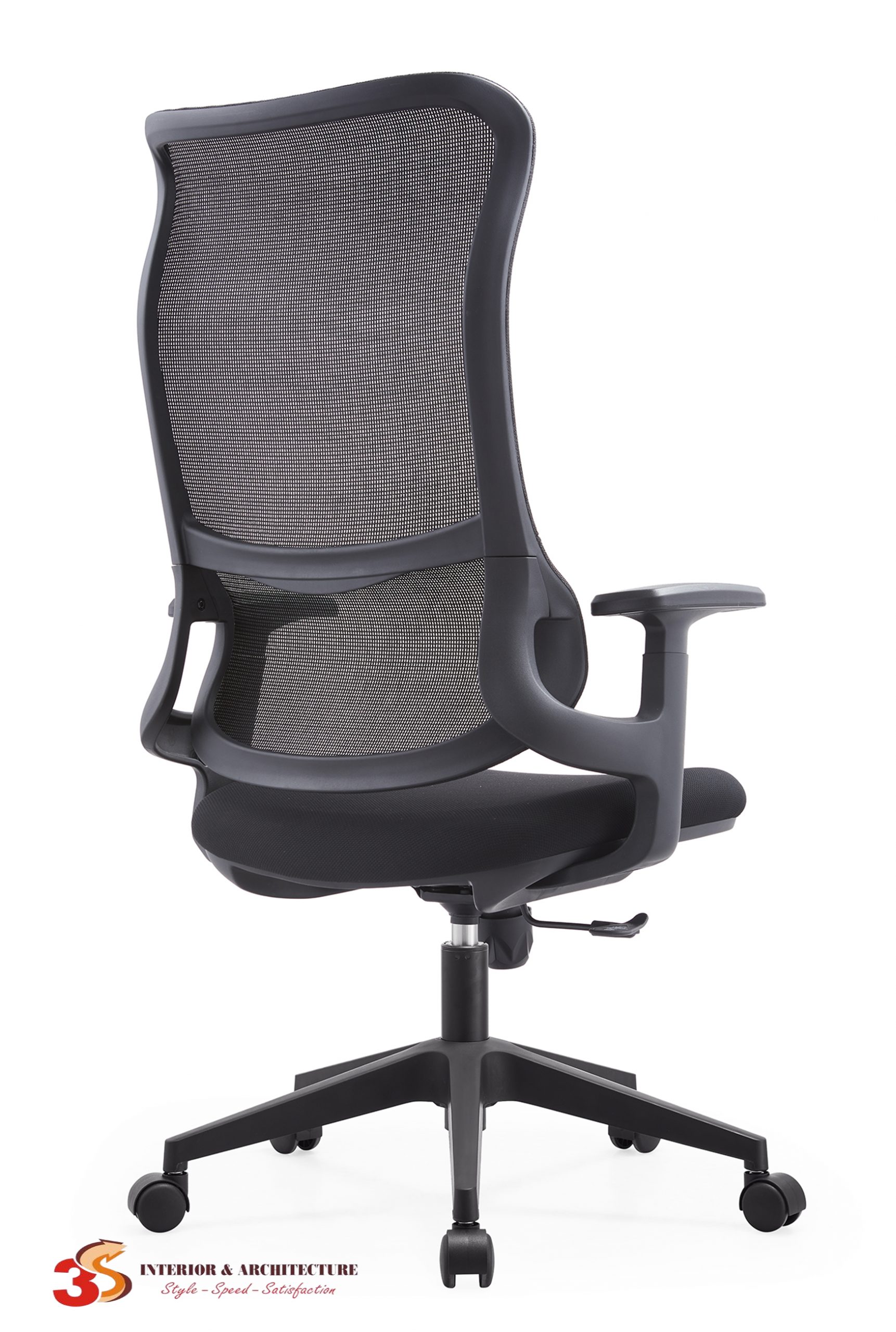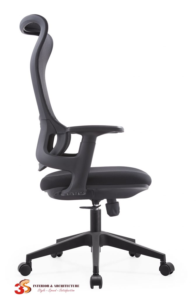 Khung tựa đầu & lưng: nhựa polypropylene (PP) màu đen kết hợp phụ kiện ép phun sợi thủy tinh, bọc lưới nylon thoáng khí – chắc chắn, đàn hồi tốt và ngồi lâu không bí nóng.