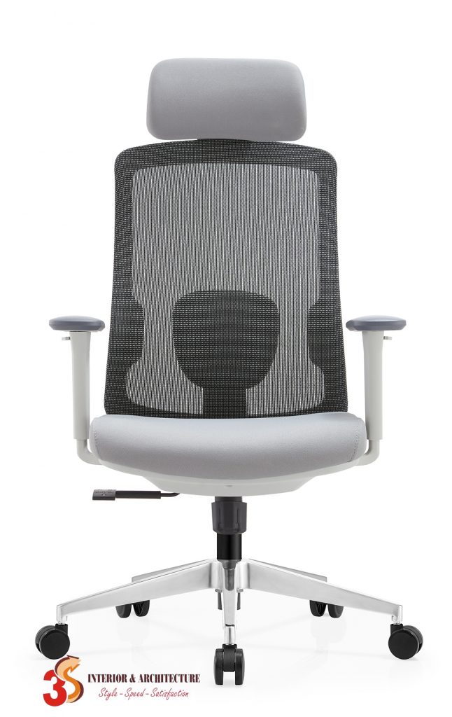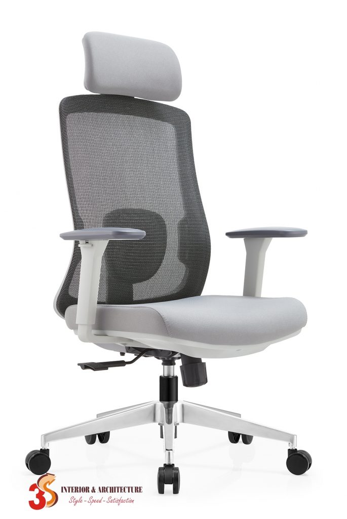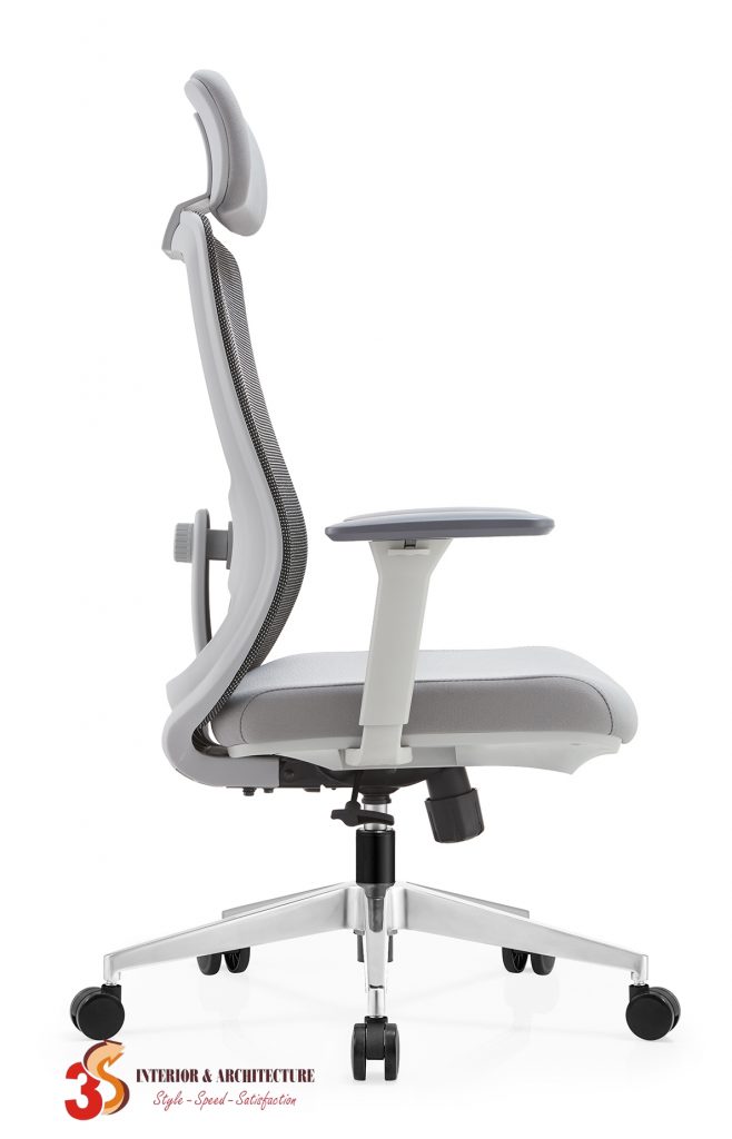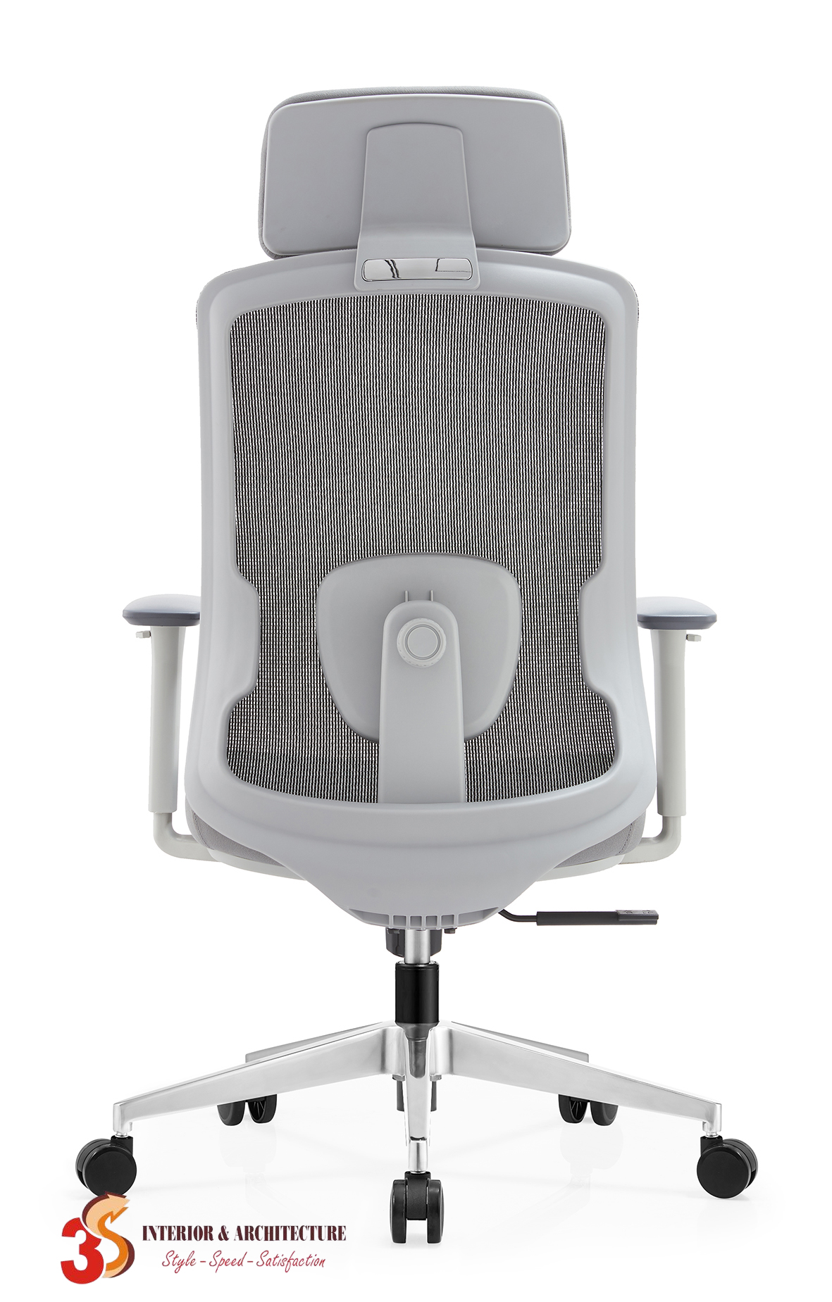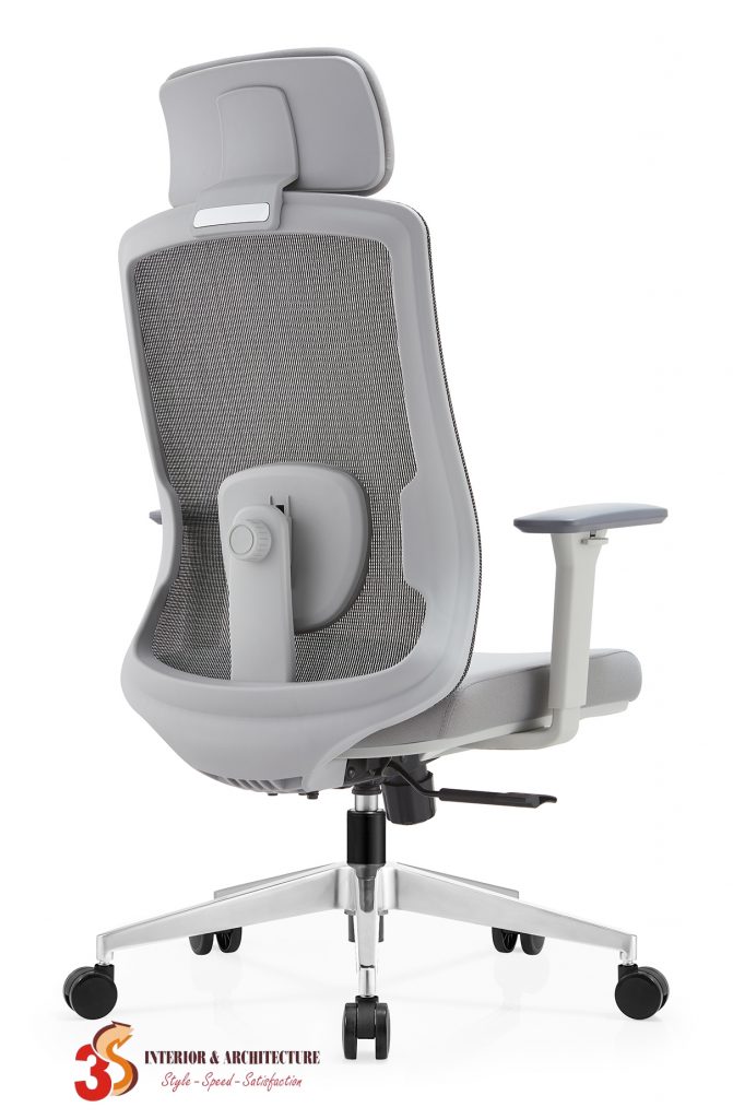 Lưng ghế: Khung lưng bằng nylon gia cường sợi màu xám, bọc lưới nylon đặc biệt.