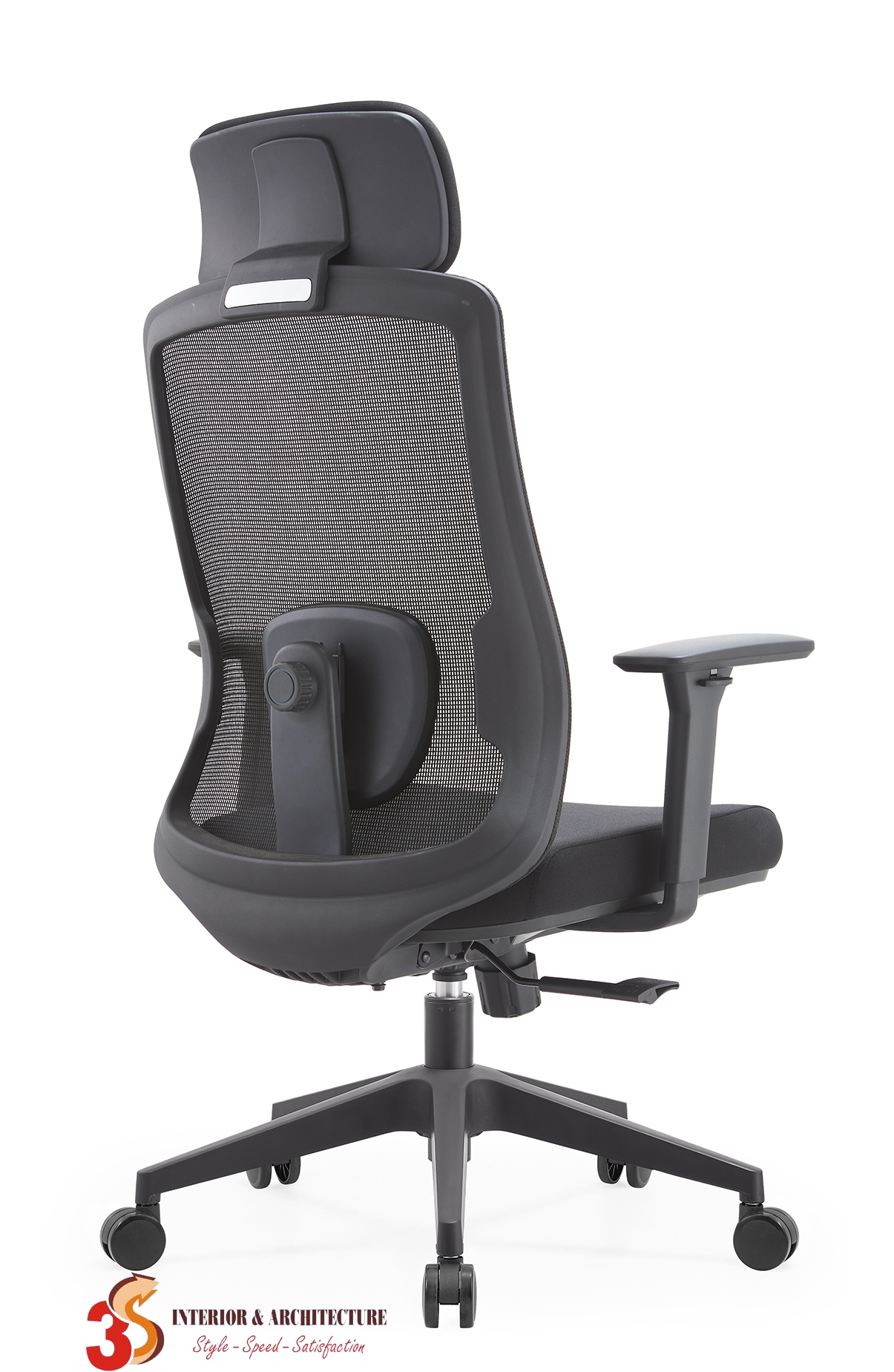 Lưng ghế: Khung lưng bằng nylon gia cường sợi, bọc lưới nylon đặc biệt.